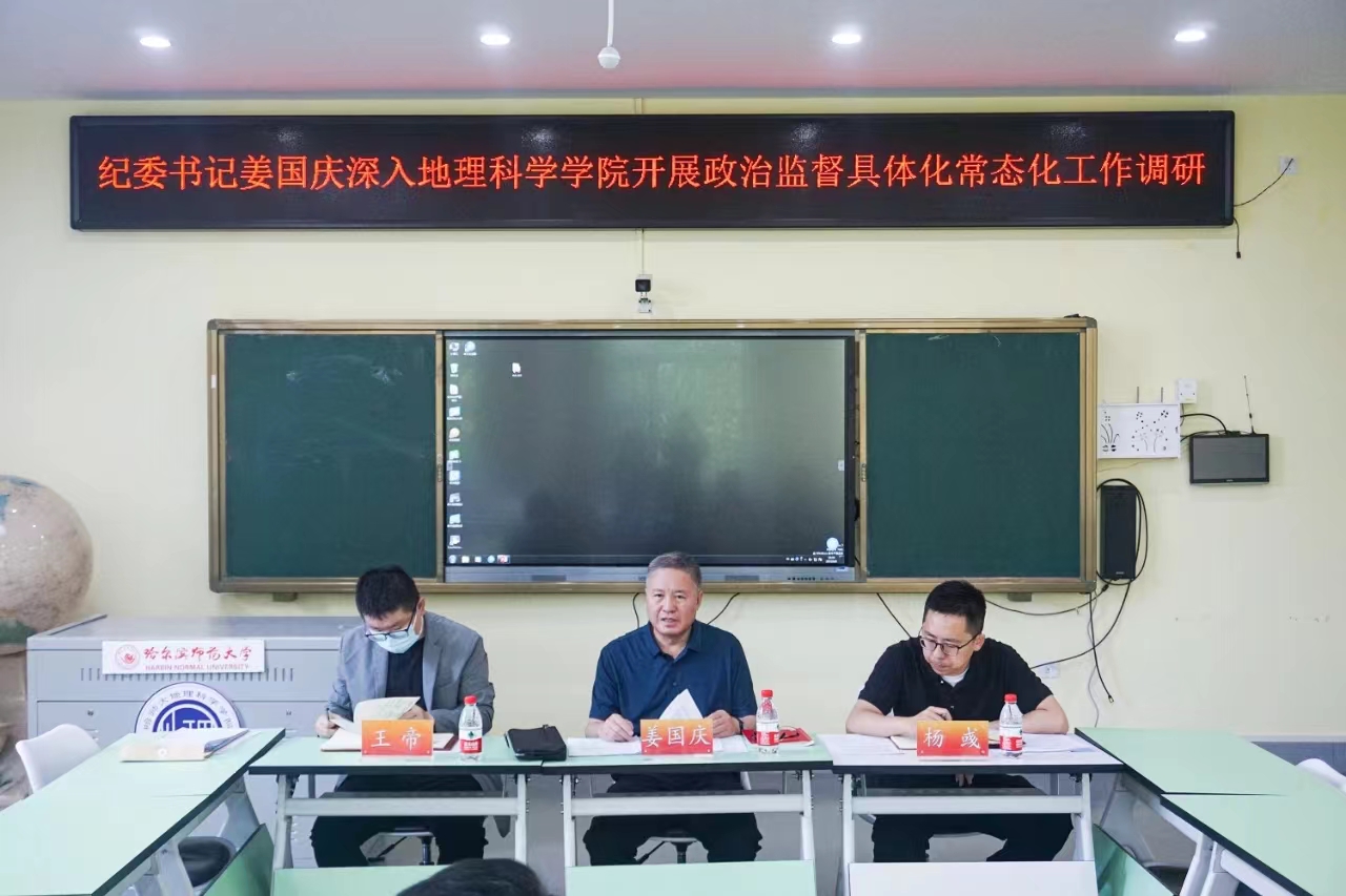 党委常委、纪委书记、省监委驻哈尔滨师范大学监察专员姜国庆以“一个根本任务、四个聚焦”作为开展调研的根本遵循,把实事求是贯穿到调查研究之中,深入马克思主义学院、地理科学学院、化学化工学院等单位重点调研学院党委担负“两个维护”重大政治责任这个根本任务情况,聚焦学院党委落实党委政治责任、严明政治纪律和政治规矩、破除形式主义官僚主义、整治群众身边腐败和作风问题等情况,听真话、察实情,有一是一、有二是二,精准查找学校二级党组织在加强和拓展政治监督方面存在的问题,精心指导各学院党委进一步提高政治监督本领,明确加强和拓展政治监督的有效方法和路径,实现政治监督具体化常态化,切实强化党的政治建设。
